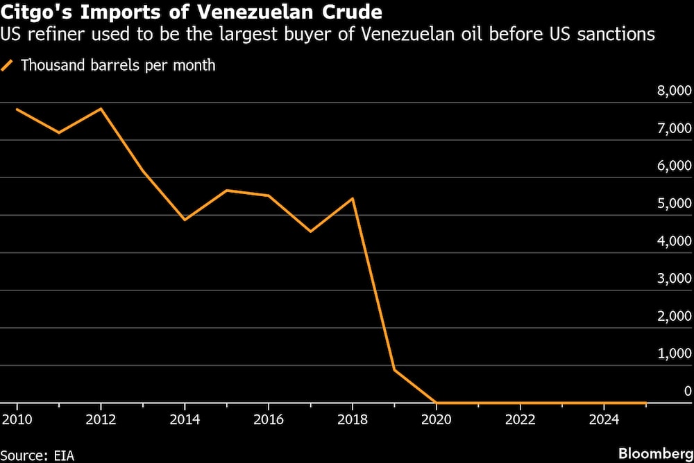 Citgo dejó de comprar petróleo venezolano en 2019, cuando las amplias sanciones petroleras de EE.UU. En 2023, cuando EE.UU. suavizó las sanciones para permitir que compañías energéticas como Valero Energy Corp. (VLO) y Phillips 66 (PSX) volvieran a comprar crudo venezolano a través de la petrolera Chevron Corp. (CVX), esos barriles nunca se pusieron a disposición de Citgo, según una de las personas.