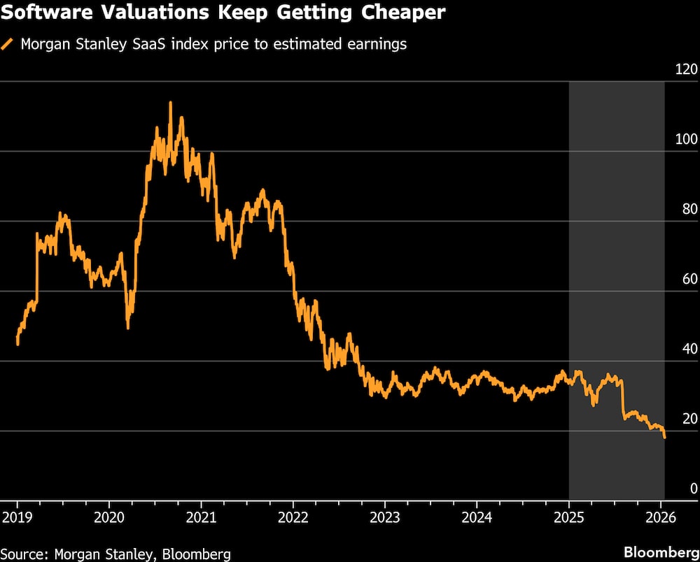 En total, un grupo de valores de software como servicio rastreados por Morgan Stanley ha bajado un 15% en lo que va de año, tras una caída del 11% en 2025. Es el peor comienzo de año desde 2022, según datos recopilados por Bloomberg.