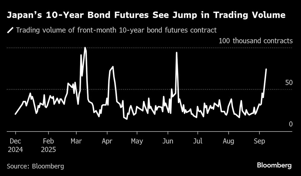 El contrato a un mes de los futuros de los bonos japoneses a 10 años registró su mayor volumen de negociación en tres meses, ya que la incertidumbre política se sumó a la actividad de los inversores que trasladaron a diciembre las posiciones del contrato que vence en septiembre.