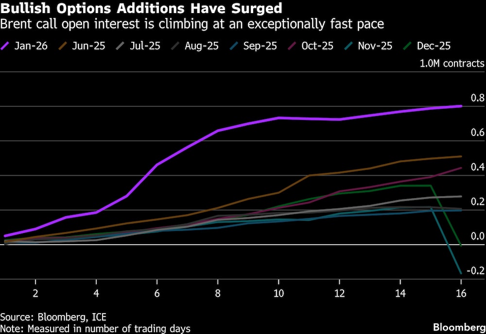 Las últimas amenazas de Trump han inyectado una prima de riesgo en los precios. Las opciones de compra alcistas han sido más caras que las opciones de venta bajistas durante el tramo más largo en unos 14 meses, ya que los operadores buscan protegerse contra el riesgo de un nuevo enfrentamiento entre EE.UU. e Irán. Las suscripciones de opciones alcistas también han crecido al ritmo más rápido en al menos seis años.