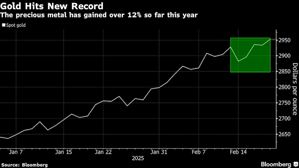El metal precioso ha batido sucesivos récords este año, después de subir un 27% en 2024, en medio de la creciente preocupación por las agendas comerciales y geopolíticas de Trump, constantemente perturbadoras. Goldman Sachs Group Inc. (GS) elevó esta semana su objetivo para fin de año a US$3.100 la onza, afirmando que unas compras de los bancos centrales más fuertes de lo esperado serían un motor clave para los precios.