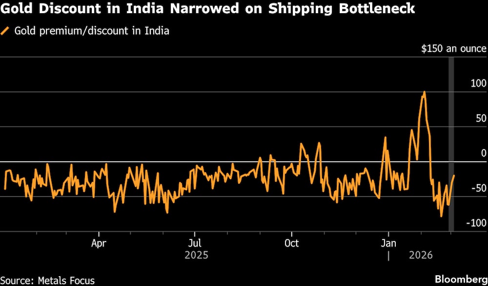Muchos compradores se han retirado de los nuevos pedidos, poco dispuestos a pagar unos gastos de envío y seguro excepcionalmente elevados sin garantía de una entrega rápida. Como resultado, en lugar de pagar indefinidamente por el almacenamiento y la financiación, los comerciantes están ofreciendo descuentos de hasta US$30 la onza a la referencia mundial en Londres, según personas con conocimiento del asunto, que pidieron no ser nombradas por discutir información de mercado.