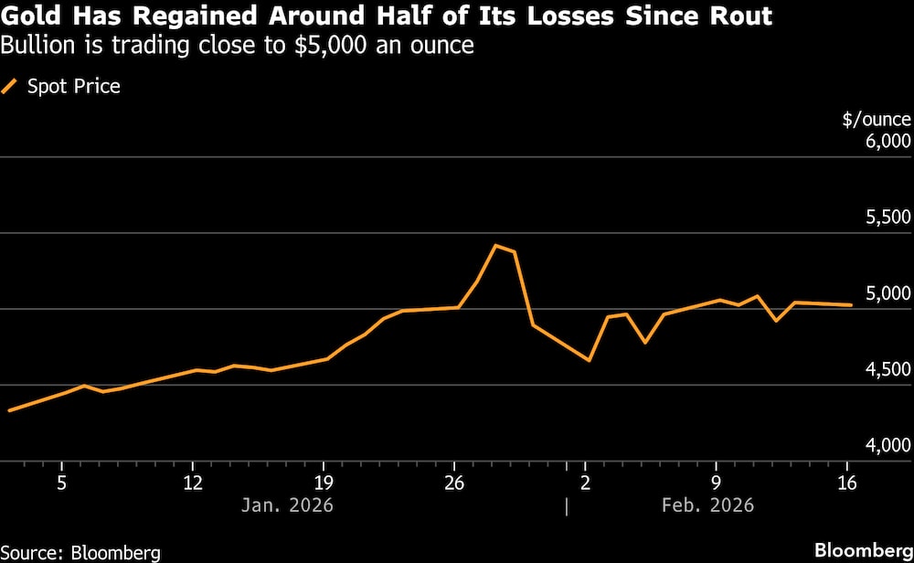 El oro alcanzó un récord por encima de los US$5.595 a finales de enero, cuando una oleada de compras especulativas impulsó el rally hasta el punto de ruptura, antes de que una abrupta caída a finales de mes lo hiciera retroceder por debajo de los US$4.500. En una negociación agitada, el metal ha recuperado aproximadamente la mitad de sus pérdidas desde entonces.