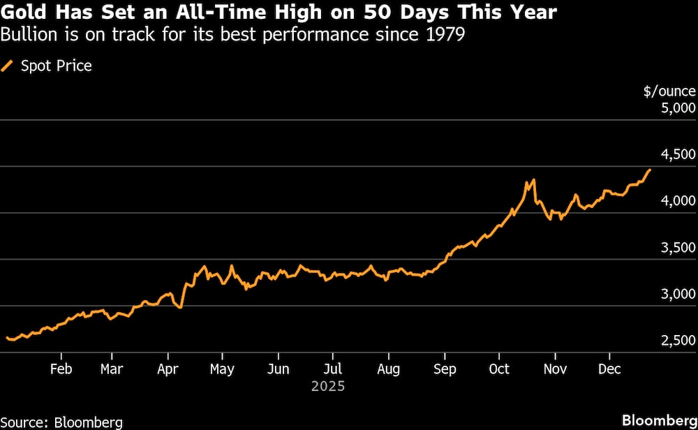 El lingote se ha recuperado rápidamente tras un retroceso desde su anterior máximo de US$4.381 en octubre, cuando el repunte se consideró sobrecalentado, y ahora está posicionado para llevar estas ganancias al próximo año. Goldman Sachs Group Inc. es uno de los varios bancos que pronostican que los precios seguirán subiendo en 2026, emitiendo un escenario base de US$4.900 la onza con riesgos al alza.