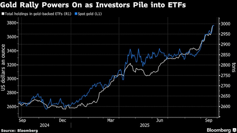 Por otra parte, el oro se ha visto respaldado por la fuerte demanda de fondos cotizados en bolsa, con entradas que alcanzaron el viernes su nivel más alto en tres años. En lo que va de año, las tenencias de ETF respaldados por lingotes han aumentado todos los meses salvo mayo, incrementándose en casi 400 toneladas, según datos recopilados por Bloomberg.