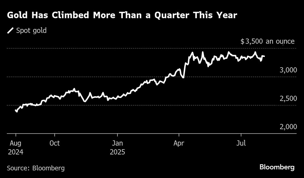 El oro ha subido más de una cuarta parte este año, ya que la tumultuosa política de Trump y las tensiones geopolíticas en otras partes del mundo impulsan la demanda de refugio. Inversores y analistas ven más ganancias en el futuro, con las continuas compras de los bancos centrales y los posibles recortes de tasas.