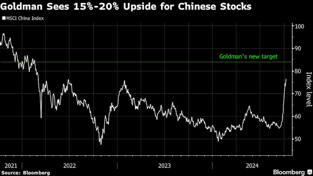 Goldman elevó su objetivo para el índice MSCI China y el índice de referencia CSI 300 a 84 y 4.600 respectivamente, lo que implica una rentabilidad total del 15%-18% desde los niveles actuales.