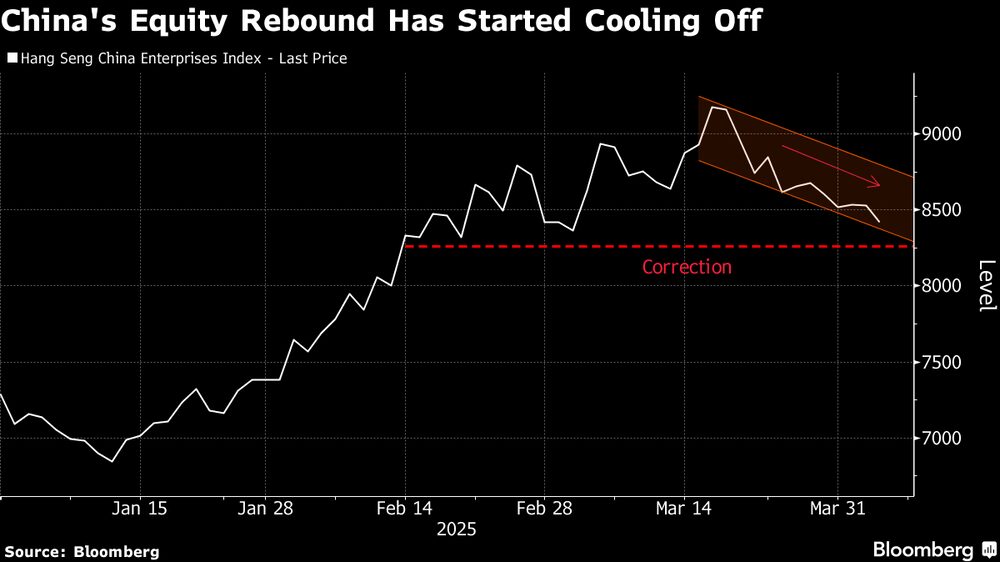Una caída de magnitud similar en las acciones locales podría situar a múltiples índices bursátiles chinos -como el principal de este año, el Hang Seng China Enterprises Index- en una corrección técnica y, en algunos casos, cerca de un mercado bajista. Eso pondría fin a una incipiente recuperación de los activos del país, a menos que los inversores con sede en China continental y los cazadores de gangas intervengan para frenar la caída.