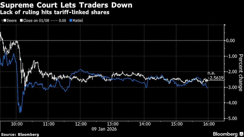 Las últimas semanas han subrayado el riesgo de volatilidad si los jueces decepcionan a los inversores, con acciones como Mattel Inc. (MAT) y Deere & Co. sufriendo un golpe el 9 de enero cuando el tribunal no emitió un fallo anticipado en el caso.