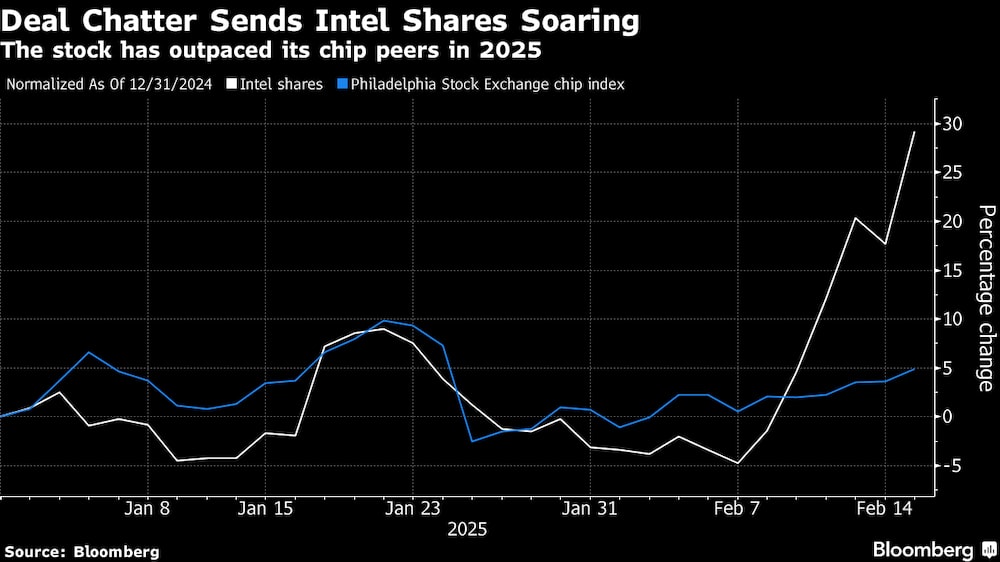 Bloomberg — Intel Corp. (INTC) ganó hasta un 11% ante las especulaciones de que el emblemático fabricante de chips podría disolverse en un acuerdo en el que participen Taiwan Semiconductor Manufacturing Co. (TSM) y Broadcom Inc. (AVGO).