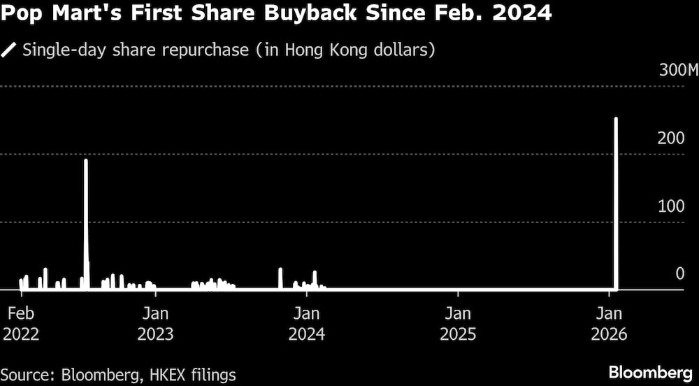 Bloomberg — Las acciones de Pop Mart International Group Ltd. registraron la mayor subida en cinco meses después de que la primera recompra de acciones del fabricante de juguetes chino desde 2024 impulsara la confianza de los inversores.