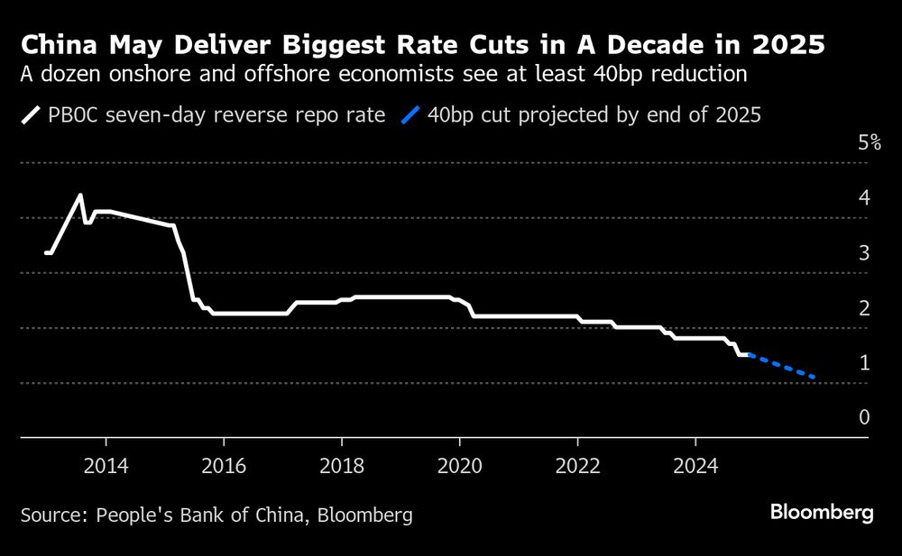 China podría elevar su déficit presupuestario al nivel más alto en tres décadas y realizar los recortes más profundos de las tasas de interés desde 2015, según los economistas. Al menos siete corredurías chinas prevén que el objetivo de déficit fiscal del próximo año podría alcanzar el 4% del producto interior bruto, el más amplio desde una importante reforma fiscal en 1994. Pekín ha mantenido históricamente su ratio de déficit presupuestario en el 3% o por debajo.