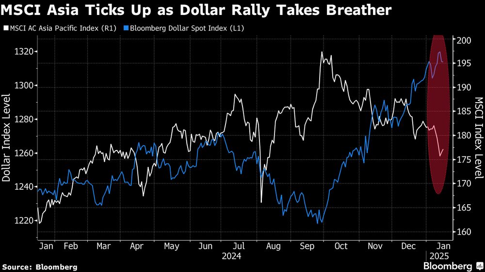 El índice MSCI Asia-Pacífico ganó un 0,4%, subiendo por segunda sesión consecutiva, liderado por las ganancias en Japón y Corea del Sur. Los futuros de las acciones estadounidenses registraron pocos cambios. Las acciones chinas podrían ampliar sus ganancias, ya que un indicador de las acciones continentales que cotizan en EE.UU. subió más de un 2% después de que Bloomberg informara de que el equipo entrante de Donald Trump está considerando la posibilidad de subir gradualmente los aranceles.