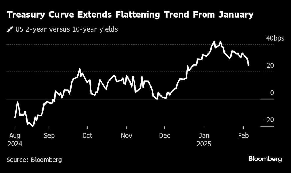 El descenso de los rendimientos pesó sobre el dólar. Un índice de fortaleza del billete verde cayó un 0,2% hasta el nivel más bajo en una semana, deshaciendo las ganancias por las noticias de los aranceles de Donald Trump a México, Canadá y China durante la semana pasada, que inicialmente impulsaron la demanda de activos defensivos. El yen se mantuvo estable tras fortalecerse frente al dólar en la sesión anterior.