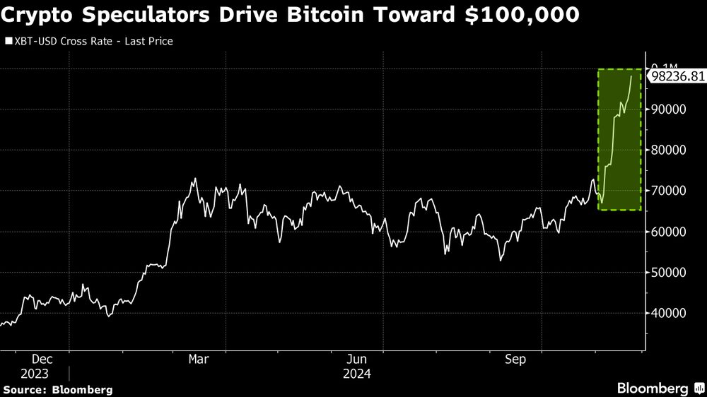 El bitcoin marcó un nuevo máximo, superando los 98.000 dólares, gracias a las apuestas de que el apoyo del presidente electo Donald Trump a las criptomonedas y un entorno normativo más laxo marcarán el comienzo de un auge para el sector. Un informe de Fox Business News sugirió que Chris Giancarlo, ex presidente de la Comisión de Comercio de Futuros de Materias Primas, estaba siendo sopesado como el primer “zar de las criptomonedas” bajo la administración entrante.