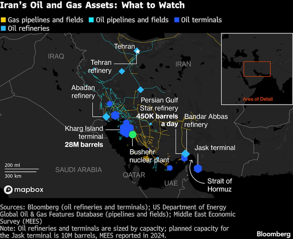 Irán se encuentra a un lado del Estrecho de Ormuz, la vía de navegación de aproximadamente una quinta parte del crudo mundial procedente de proveedores clave como Arabia Saudí e Irak. Aunque la vía marítima permanece abierta, algunos petroleros evitaban navegar por ella tras los ataques y los barcos se amontonaban a ambos lados de la entrada, según muestran los datos de seguimiento recopilados por Bloomberg.