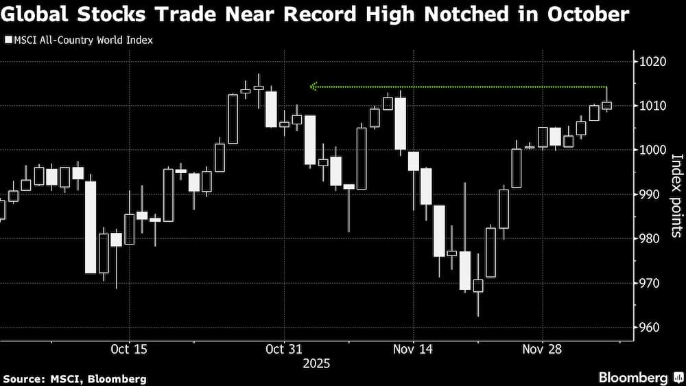 El tono moderado reflejaba la creciente cautela de los inversores sobre la durabilidad del repunte impulsado por la IA, con la renta variable mundial rondando los máximos históricos de octubre. Los mercados también se preparaban para los anuncios políticos de los bancos centrales, desde Australia hasta Brasil y EE.UU., justo cuando las renovadas presiones inflacionistas provocan una rápida reevaluación de las perspectivas monetarias para el próximo año.