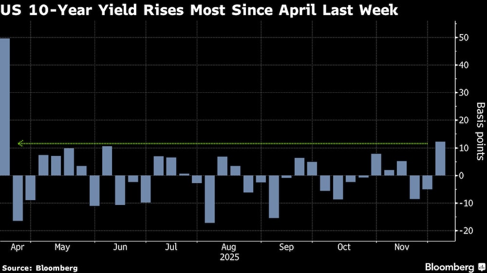 Las subastas de esta semana de deuda pública a tres, 10 y 30 años están programadas para comenzar el lunes, un día antes de lo habitual para evitar que coincidan con los anuncios de la Fed del 10 de diciembre. Australia reabrirá una línea de bonos con vencimiento en 2054 justo cuando la rentabilidad a 10 años alcanza su nivel más alto desde noviembre de 2023.