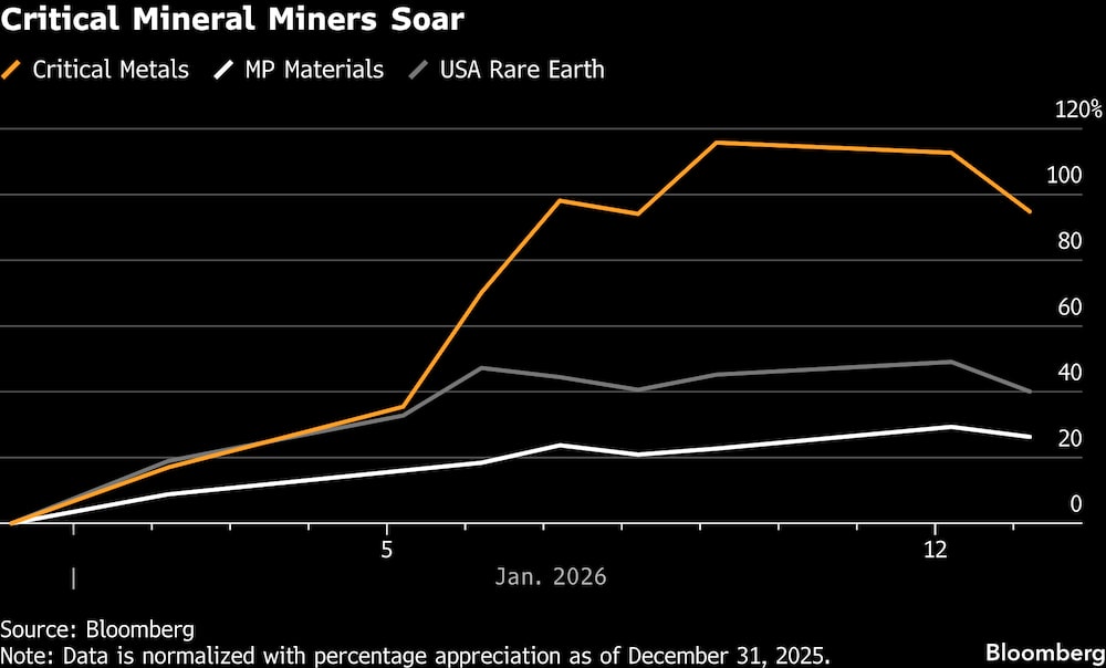 Otras mineras de ese subsector, incluidas MP Materials Corp. y USA Rare Earth Inc., también saltaron cuando los funcionarios de Trump y los líderes europeos intercambiaron púas, con funcionarios daneses advirtiendo sobre el fin de la OTAN.