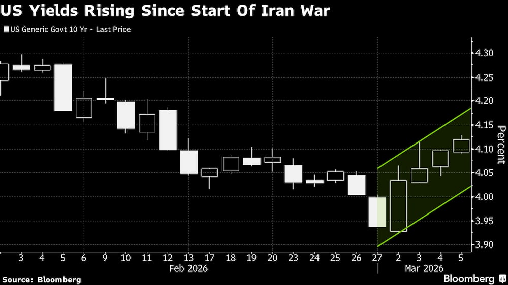 Bloomberg — Los bonos del Tesoro cayeron por cuarto día consecutivo, ya que el aumento de los precios del crudo debido a la guerra de Irán se sumó a la preocupación de que la inflación se acelere.