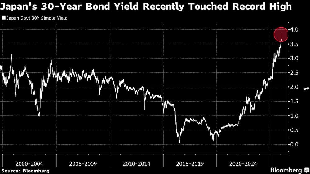 El plan de la primera ministra, Sanae Takaichi, de recortar el impuesto sobre las ventas de alimentos disparó los rendimientos a máximos históricos el mes pasado, en una venta que se propagó por los mercados de bonos de todo el mundo. Aunque desde entonces la tensión se ha relajado un poco, el rendimiento de los bonos japoneses a 30 años sigue cerca de su nivel más alto desde su debut.