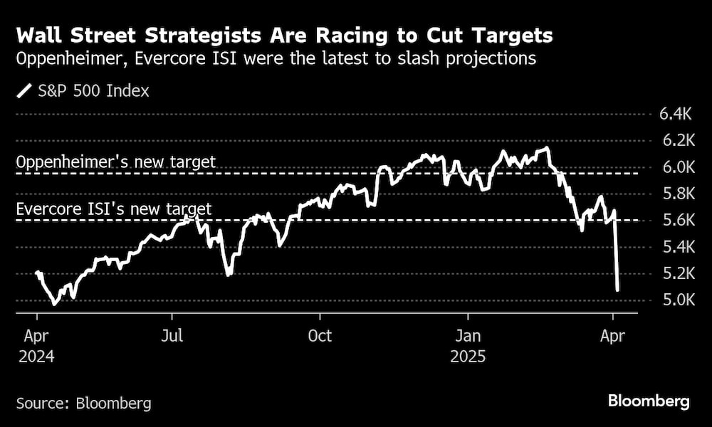 John Stoltzfus, de Oppenheimer & Co., el mayor alcista entre los estrategas hasta marzo, se convirtió en el último en recortar su objetivo de fin de año sobre el índice S&P 500, a 5.950 puntos desde 7.100. Michael Wilson, de Morgan Stanley, advirtió que el índice de referencia podría hundirse otro 7% a 8% si la administración Trump se mantiene firme en los gravámenes.