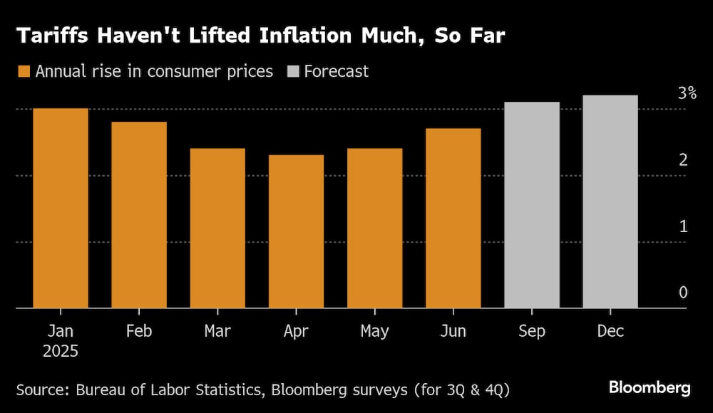 Hasta ahora, los precios al consumo no han experimentado un gran salto arancelario, aunque en las cifras de junio, publicadas el martes, hubo indicios de que las empresas están empezando a repercutir los costos relacionados con el comercio. Eso ha reforzado las expectativas de que la Reserva Federal se mantendrá impasible de nuevo en su próxima reunión sobre tasas, los días 29 y 30 de julio. Los mercados siguen esperando un par de recortes para finales de año.
