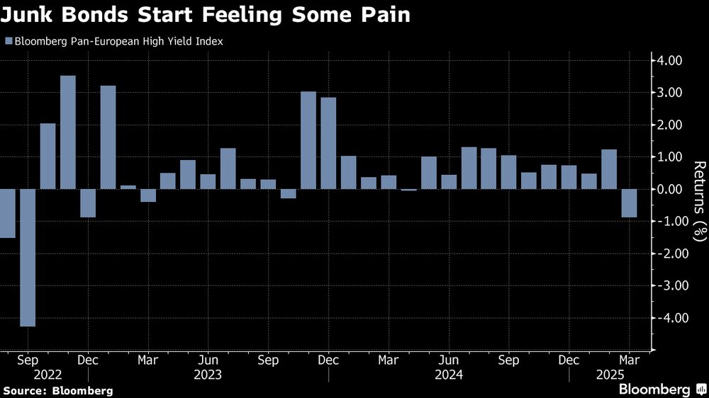 En las últimas semanas, los bonos de alto rendimiento han empezado a venderse junto con los mercados bursátiles mundiales. Marzo fue el peor mes para la rentabilidad de los bonos de alto rendimiento desde septiembre de 2022 en Europa y octubre de 2023 en Estados Unidos.