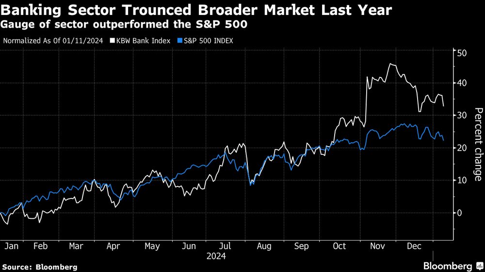Eso echa un jarro de agua fría sobre las esperanzas de los inversores de que se repita el rendimiento bursátil del año pasado, que vio a los líderes bancarios subir un 33%, superando al S&P 500 más amplio.