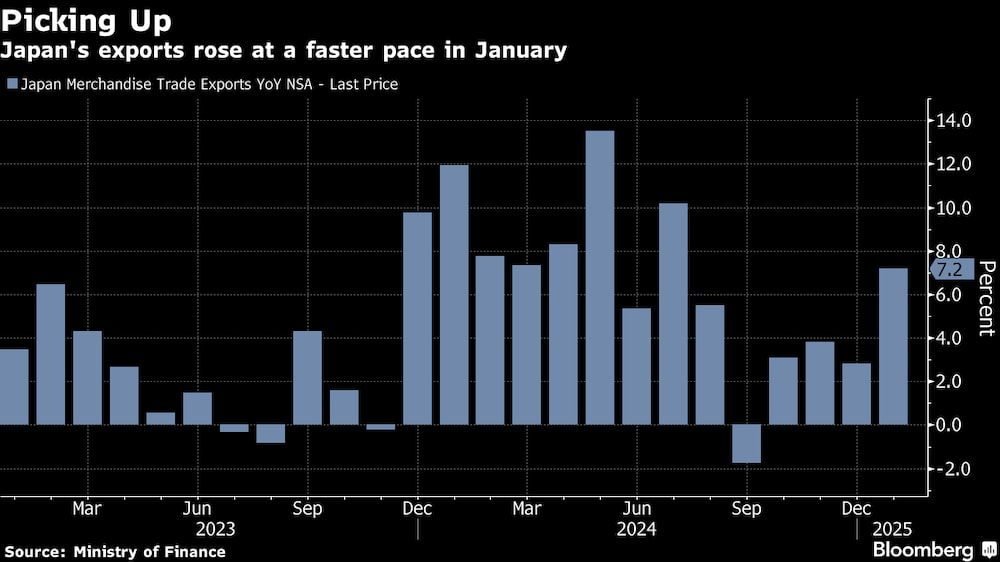 Bloomberg — Las exportaciones de Japón aumentaron a un ritmo más rápido en enero debido a que las empresas incrementaron sus pedidos justo cuando el presidente estadounidense, Donald Trump, desató un aluvión de políticas proteccionistas que se espera entren en vigor en los próximos meses.