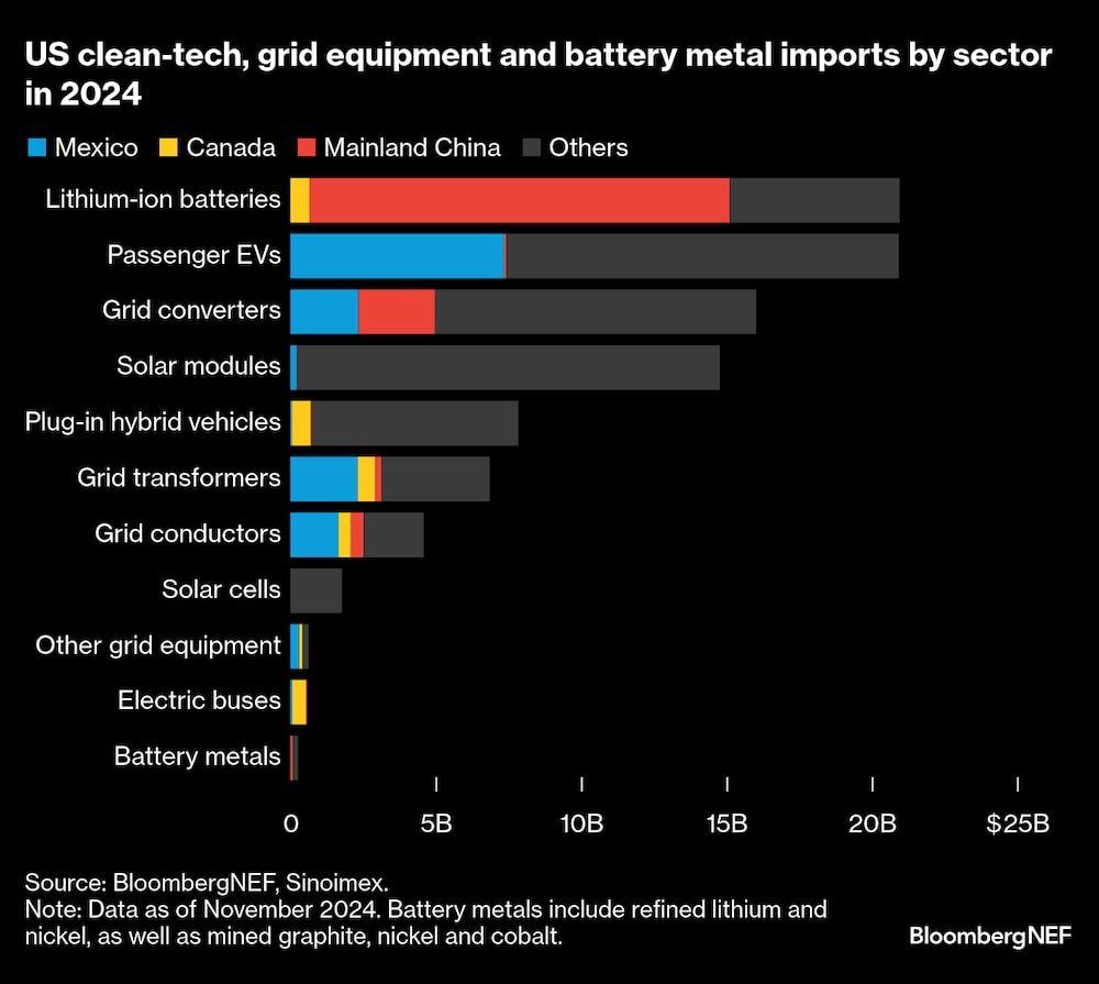 Mientras tanto, como parece probable que EE.UU. deseche otras políticas y créditos fiscales respetuosos con el clima, existe la posibilidad de que Canadá proporcione un hogar a los dólares de inversión en tecnologías limpias que se han quedado varados. Las políticas comerciales de EE.UU. también podrían fomentar una mayor electrificación de la red canadiense, sobre todo si disminuyen las exportaciones canadienses (y mexicanas) de transformadores de potencia y equipos de red a EE.UU., como sugiere el análisis de BNEF que puede ocurrir.