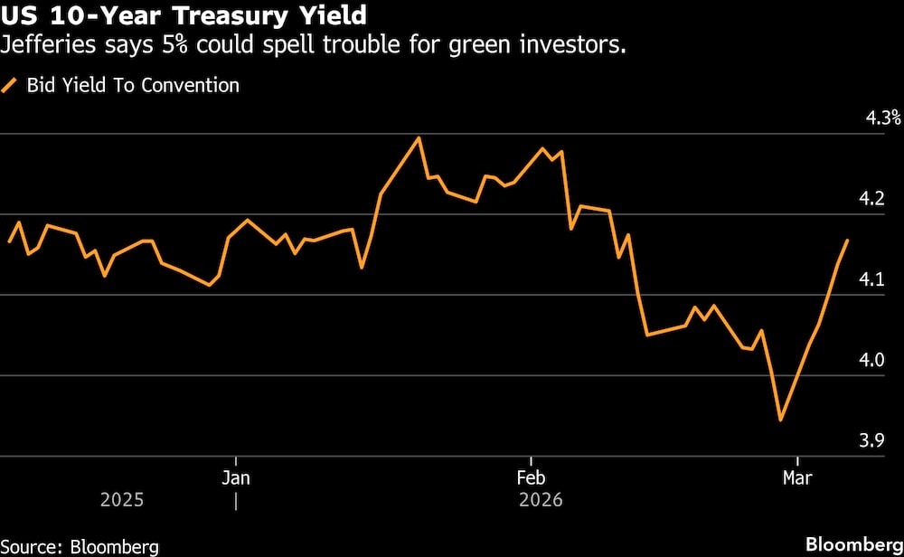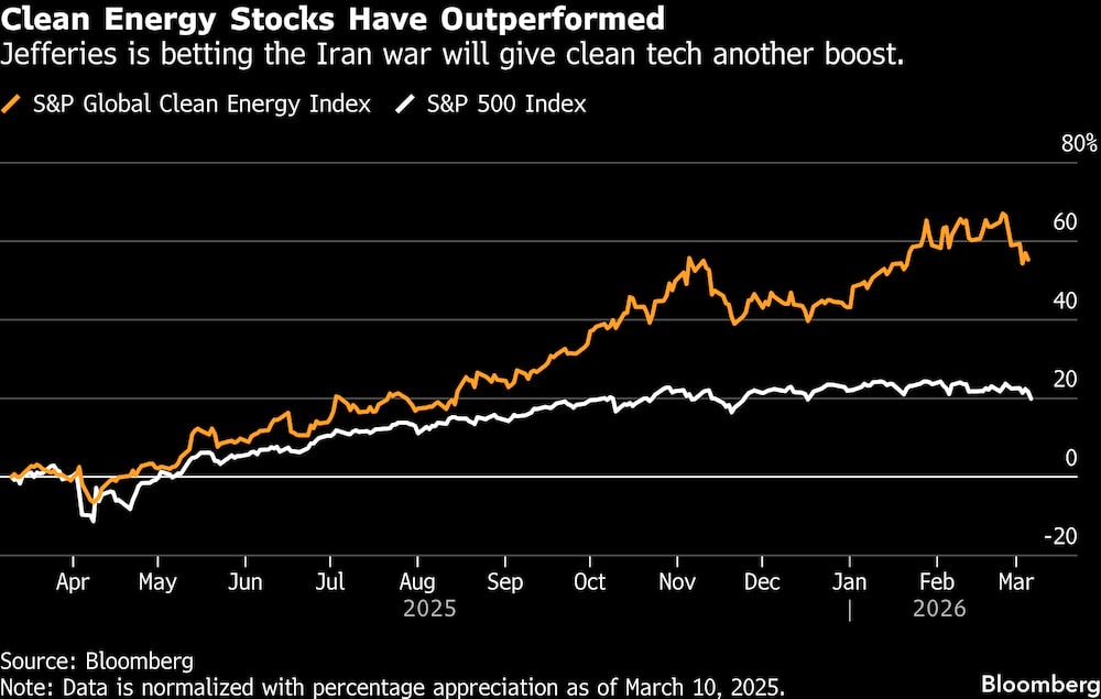 Bloomberg — Para los inversores ecológicos, el actual repunte de los precios del petróleo y el gas, alimentado por la guerra, evoca dolorosos recuerdos de 2022, cuando las energías renovables se vieron atenazadas por una venta masiva que se prolongó hasta 2025. Pero en Jefferies se insta a los clientes a redoblar su apuesta.