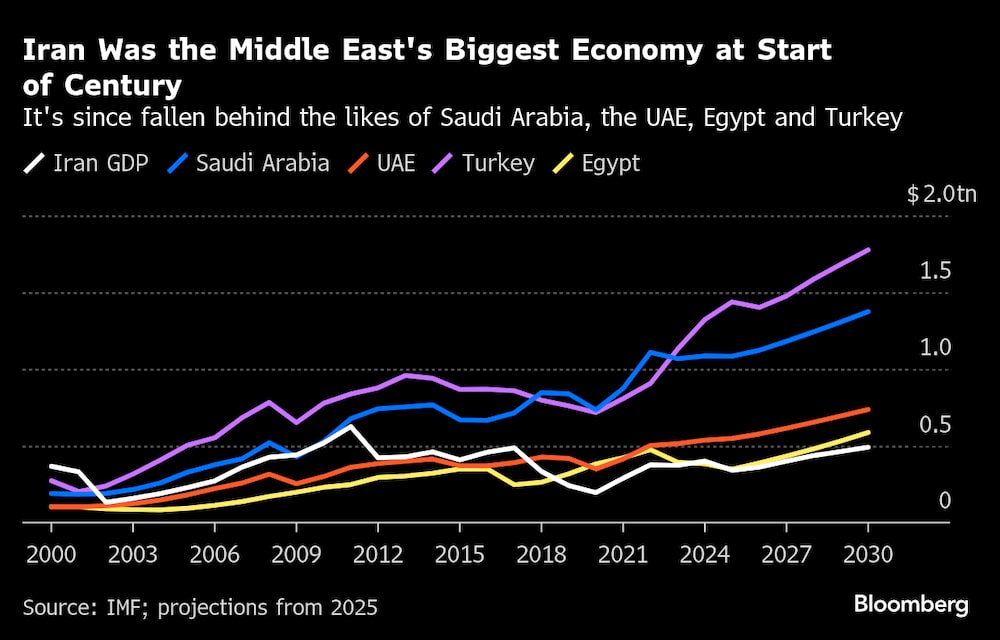 Las exportaciones de petróleo iraní han caído drásticamente en la última década como consecuencia de las duras sanciones estadounidenses, su moneda se ha desplomado hasta un mínimo histórico y el país está desesperado por invertir en infraestructuras críticas. La economía se ha quedado muy rezagada con respecto a sus homólogas de Medio Oriente, y la reciente caída de los precios del petróleo ha agravado sus problemas.