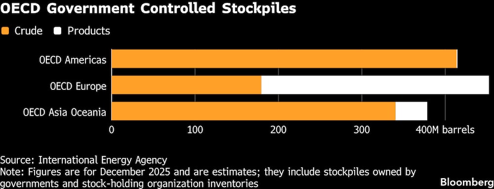 La AIE supervisa el despliegue de las reservas de la OCDE, que -incluida la Reserva Estratégica de Petróleo estadounidense- ascienden a más de 1.200 millones de barriles. Si las naciones del G-7 aprueban una liberación, la agencia convocaría una reunión para coordinar el proceso, según un funcionario.
