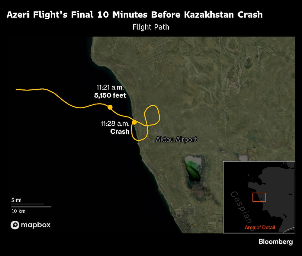 El Embraer SA 190 se estrelló el miércoles 25 de diciembre cerca de Aktau, en Kazajstán, tras sobrevolar el mar Caspio.