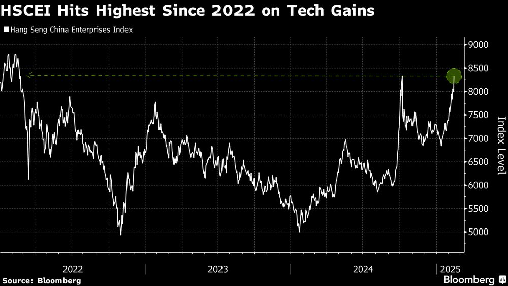 Las acciones chinas, que subieron el mes pasado por el optimismo ante los avances de la nación en IA con la llegada del modelo de gran lenguaje de DeepSeek, oscilaron el lunes entre las ganancias y las pérdidas.