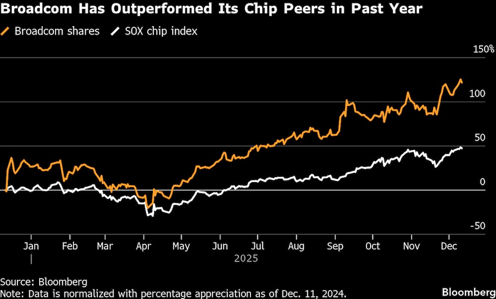 Broadcom se ha beneficiado de la demanda de sus chips personalizados como parte de la construcción masiva de centros de datos, lo que le ha dado una parte cada vez mayor de una industria dominada por Nvidia.