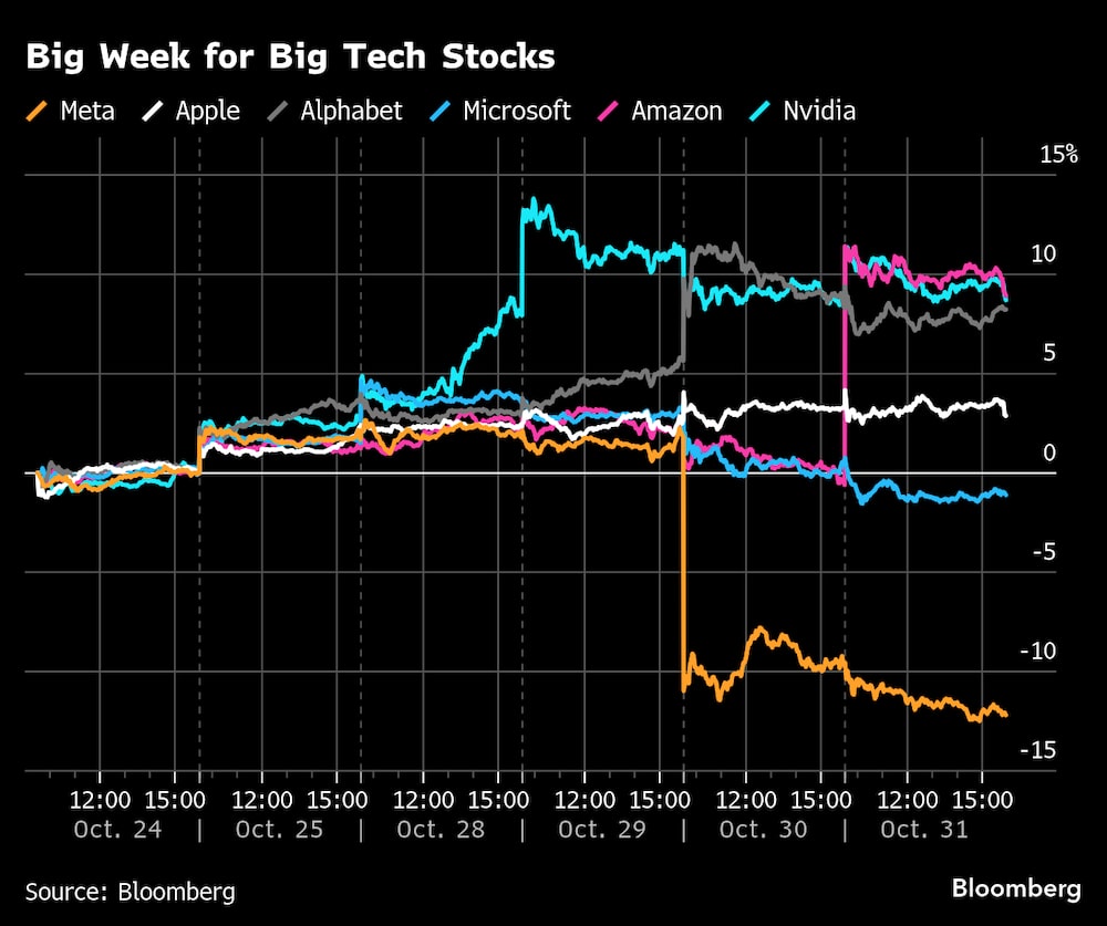 Sin embargo, los operadores también se apresuraron a castigar a las empresas cuyos gastos no mostraban una recompensa suficiente a corto plazo, lo que supuso un cambio en el otrora implacable optimismo en torno al gasto en IA. La preocupación por los enormes desembolsos en Meta Platforms Inc (META), matriz de Facebook, hizo que las acciones de la empresa sufrieran su mayor caída diaria en tres años. Microsoft Corp (MSFT) cayó más de un 4% en dos días después de que el crecimiento de los ingresos en su negocio de computación en nube no lograra impresionar a los inversores.