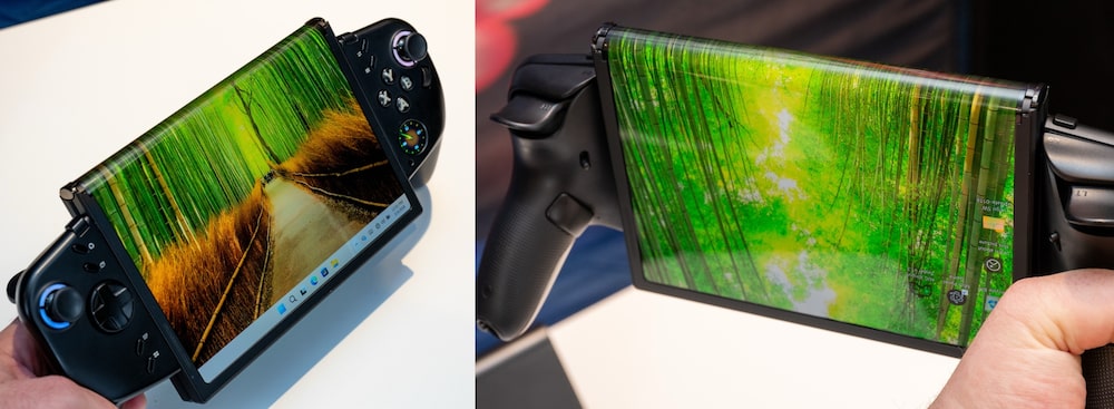 El Legion Go Fold Concept se basa en los anteriores portátiles para juegos de Lenovo al sustituir una pantalla rígida por una flexible que puede desplegarse de 7,7 a 11,6 pulgadas. Los dos controles son extraíbles y la pantalla puede orientarse horizontal o verticalmente. Cuando se utiliza en modo vertical, un usuario podría teóricamente tener un juego llenando una mitad de la pantalla y un stream de Twitch o un tutorial en la otra.