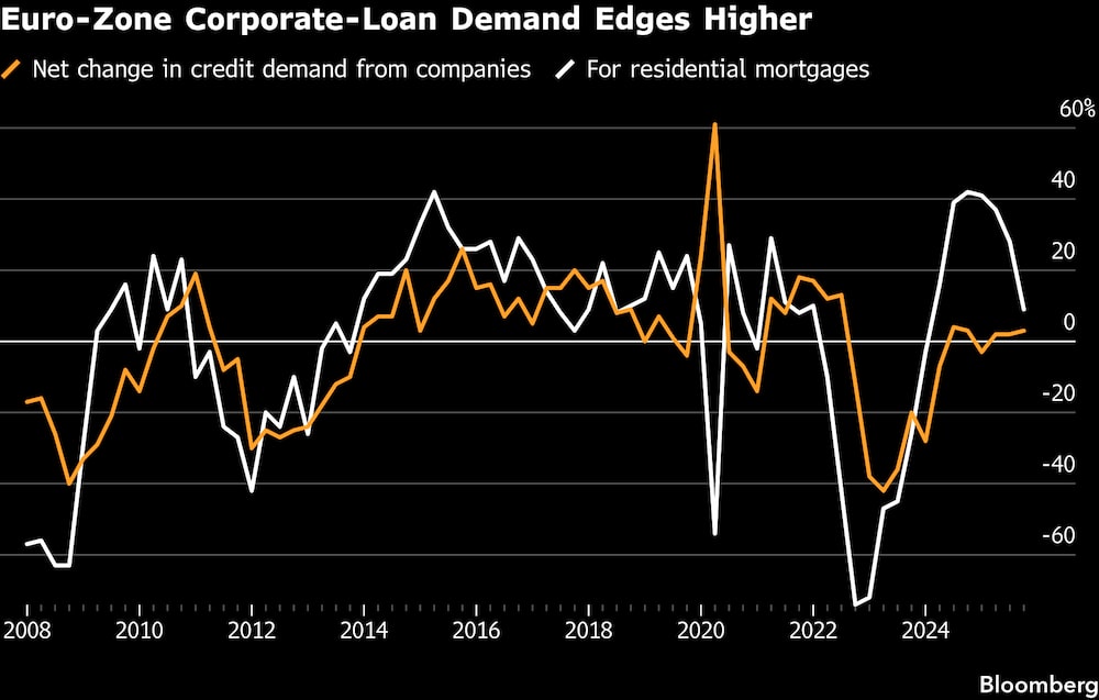 Bloomberg — Los bancos de la eurozona endurecieron inesperadamente las normas de crédito a las empresas a finales de 2025, aumentando las dudas sobre la inversión y la actividad económica antes de que el Banco Central Europeo fije las tasas de interés esta semana.