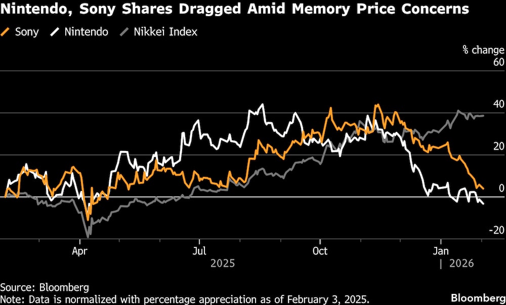 Bloomberg — Nintendo Co. y Sony Group Corp. (SONY) se enfrentarán al escrutinio sobre cómo la subida de los precios de los chips de memoria impulsada por la demanda de IA ha afectado a la rentabilidad de sus videoconsolas cuando presenten sus resultados esta semana.