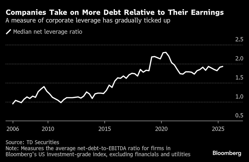 En general, las empresas han estado elevando su carga de deuda en relación con los beneficios, y en el segundo trimestre el ratio de apalancamiento se acercó a su nivel más alto desde 2021. La disposición de las empresas a apalancarse representa un cambio en su forma de pensar.
