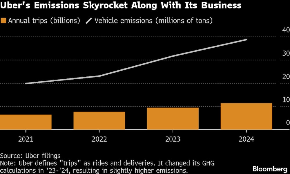 Uber necesita todos los kilómetros limpios que pueda conseguir para alcanzar sus objetivos ecológicos y diversas normativas locales. Con 38 millones de viajes diarios en todo el mundo, las emisiones de la empresa casi se han duplicado en los últimos tres años, y su huella climática supera ya a la de todo el país de Dinamarca. Sin embargo, a pesar del aumento de las emisiones y del incremento de los beneficios, Uber está reduciendo algunos de sus principales esfuerzos en materia climática.