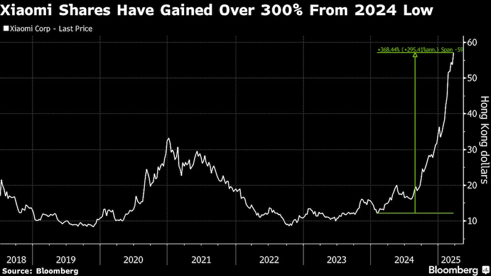 Las acciones de la empresa se dispararon tras su exitosa incursión inicial en los vehículos eléctricos, un terreno dominado por competidores mucho mayores como Tesla Inc. (TSLA) y BYD Co. Lei fijó previamente el objetivo de entregar 300.000 automóviles este año, con la intención de hacer crecer a Xiaomi más allá de su negocio tradicional de teléfonos móviles y dispositivos conectados al hogar.