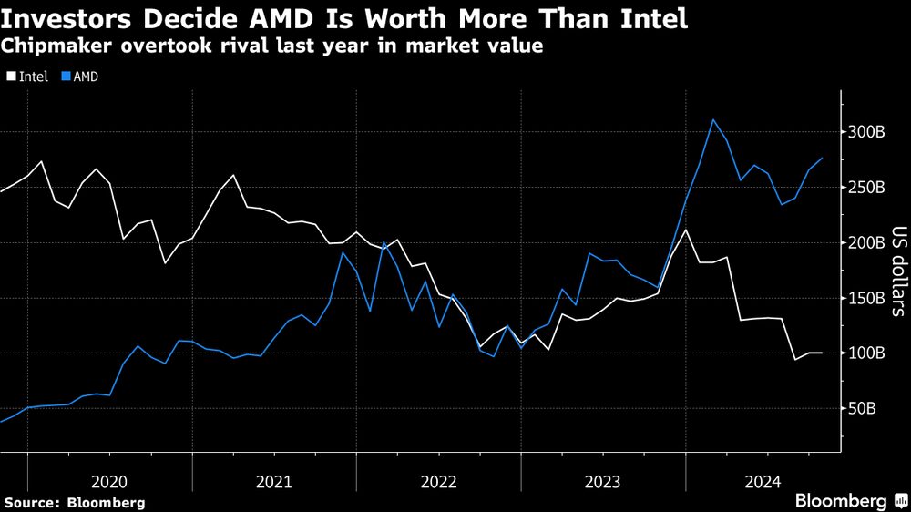 Bajo el mandato de Su, que acaba de cumplir 10 años al frente de AMD, la empresa ha eclipsado a su némesis Intel Corp. (INTC) en valoración de mercado. Pero a ambas empresas les pilló desprevenidas la ferocidad con la que el sector adoptó los aceleradores de IA.