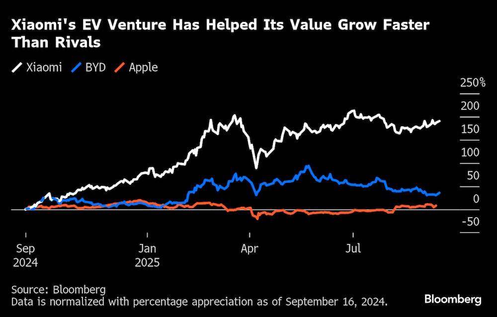 Conocida desde hace tiempo por su propuesta de relación calidad-precio que abarca desde teléfonos inteligentes y ordenadores portátiles hasta aparatos de cocina y maletas, Xiaomi hizo una audaz incursión en los vehículos eléctricos que ha empezado a dar sus frutos en el último año, casi triplicando sus acciones cotizadas en Hong Kong. Al triunfar en un campo emergente que Apple abandonó, Xiaomi parece recién envalentonada para enfrentarse al líder estadounidense de los smartphones.